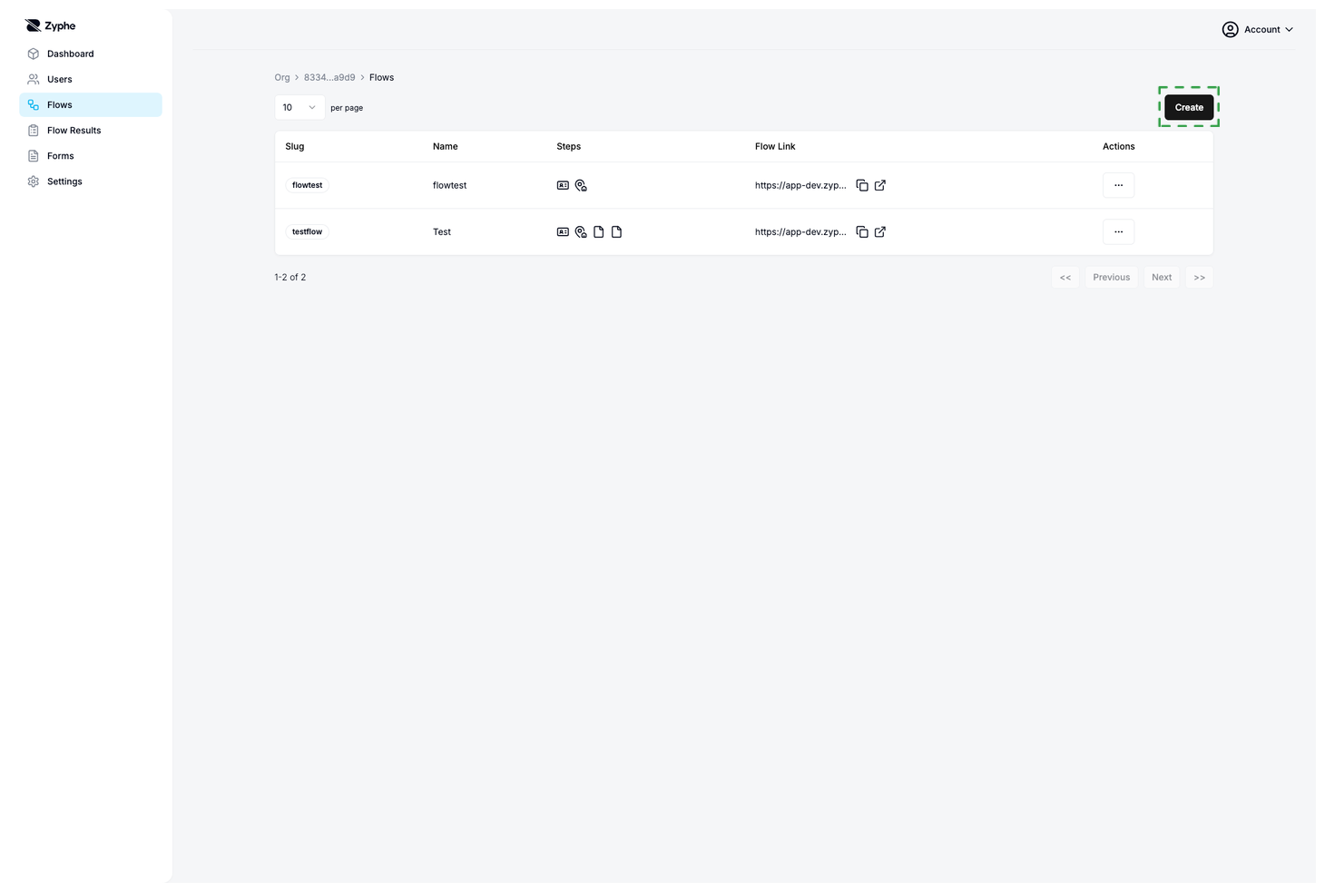 Login to the Zyphe Dashboard and navigate to the Flows section.