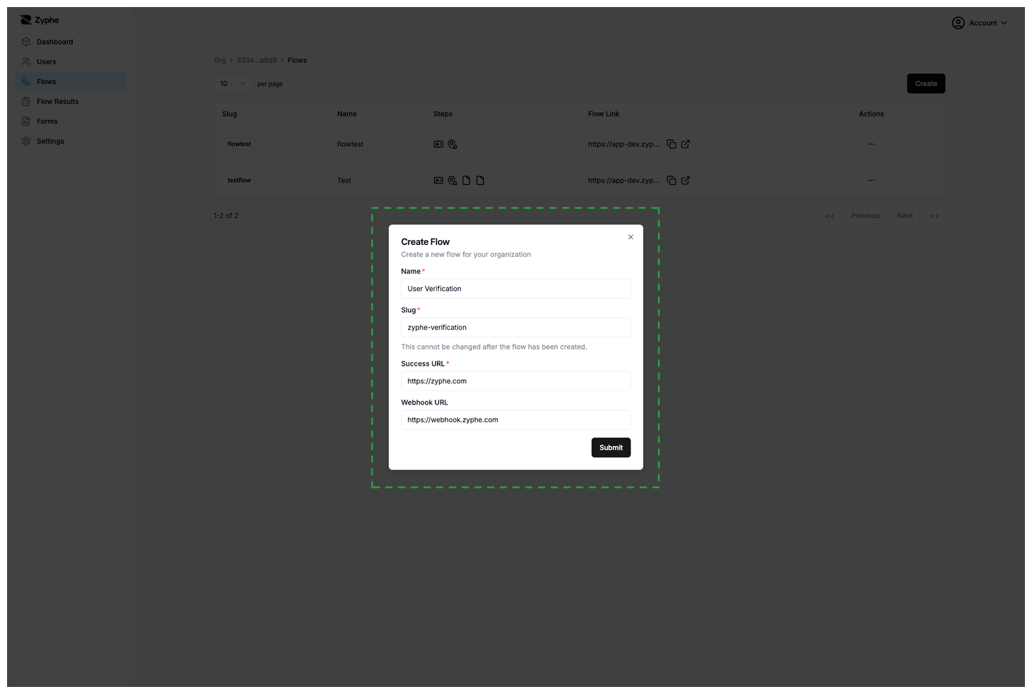 In this page you will learn how to setup a new verification flow on Zyphe platform.