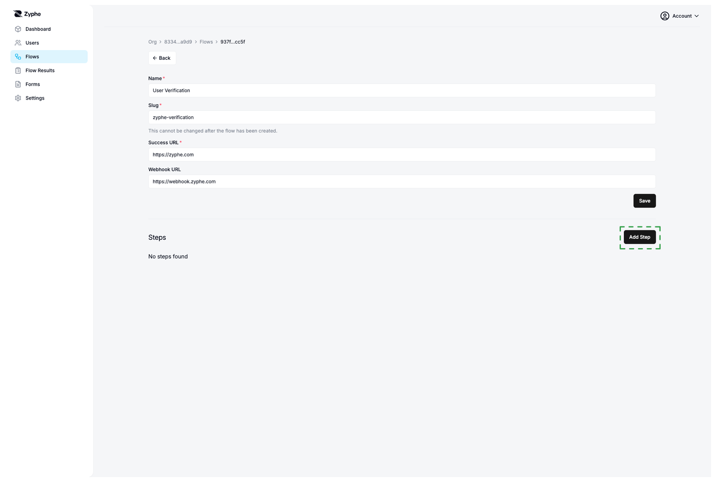 Login to the Zyphe Dashboard and navigate to the Flows section.