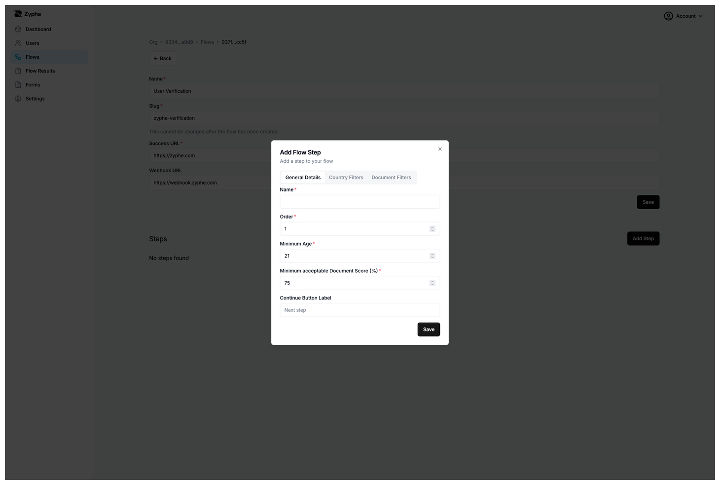 - Name: The name of the flow step. It will be used to identify the step in the flow.
